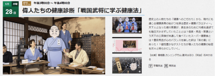 NHK BSプレミアム「偉人たちの健康診断・第2弾」
