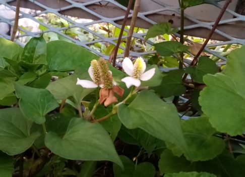 5/30に近所のお宅にどくだみの白い花が咲いていることに気づき、調べてみました。実は白い花というのは …